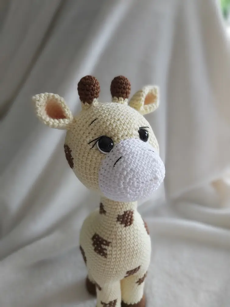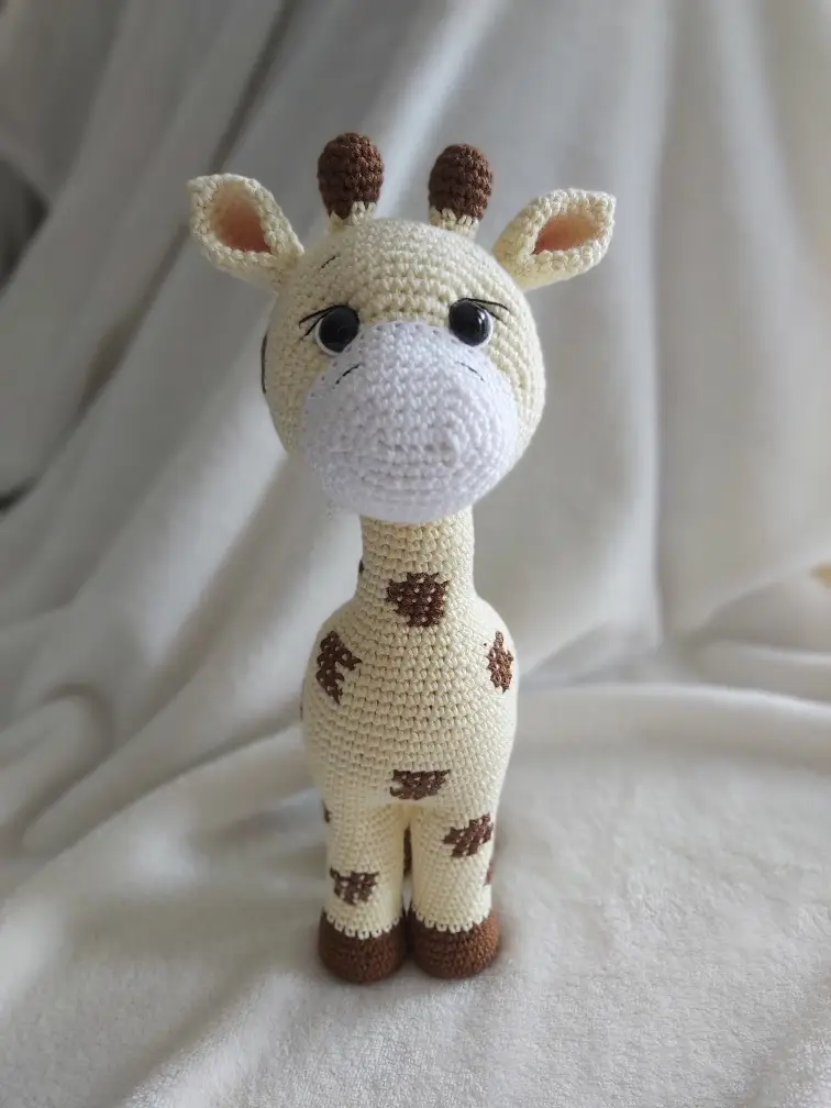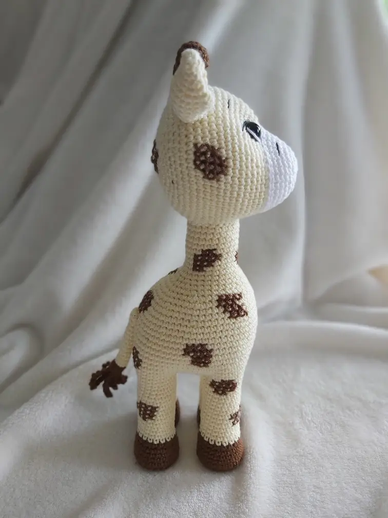 Meine Rassel-Giraffe Fredi ist aus reinem Baumwollgarn gefertigt. Auch die Füllwatte ist geprüft und für Babies und Kleinkinder unbedenklich. Bei Verschmutzung kann Fredi bei 30° / Wolle gewaschen werden. Giraffe Fredi ist ca. 26 cm hoch und im Körper befindet sich eine kleine Rasselkugel.